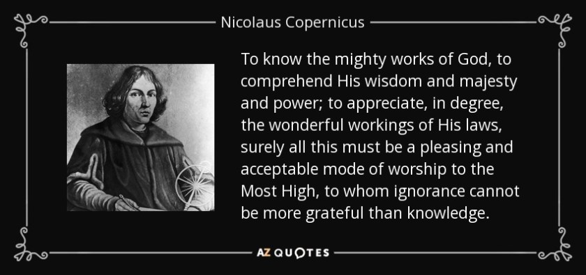 Science on the other hand, and all of knowledge by extension, is a tool our Creator blessed us with to explore, discover and better appreciate His wisdom and intentionality in Creation. Theologians have believed for centuries that God reveals Himself through the creative order (Psalm 19, Romans 1:20), and so have many scientists. As a matter of fact, the father of the heliocentric model, Nicolaus Copernicus considered the solar system a “world-machine established in our behalf by the best and most systematic Builder of all.” He said studying the order brings us to “wonder at the Artificer of all things, in Whom is all happiness and every good.” As profound as these thoughts were, his perspective saw what we know as the solar system as the whole universe. This shows us that knowledge is expanding.